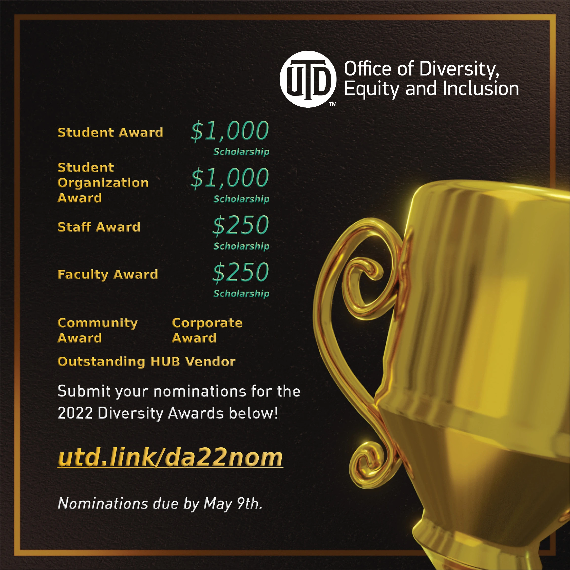 One of our office’s major annual goals involved holding an awards ceremony, honoring leaders in diversity for their work done across campus.